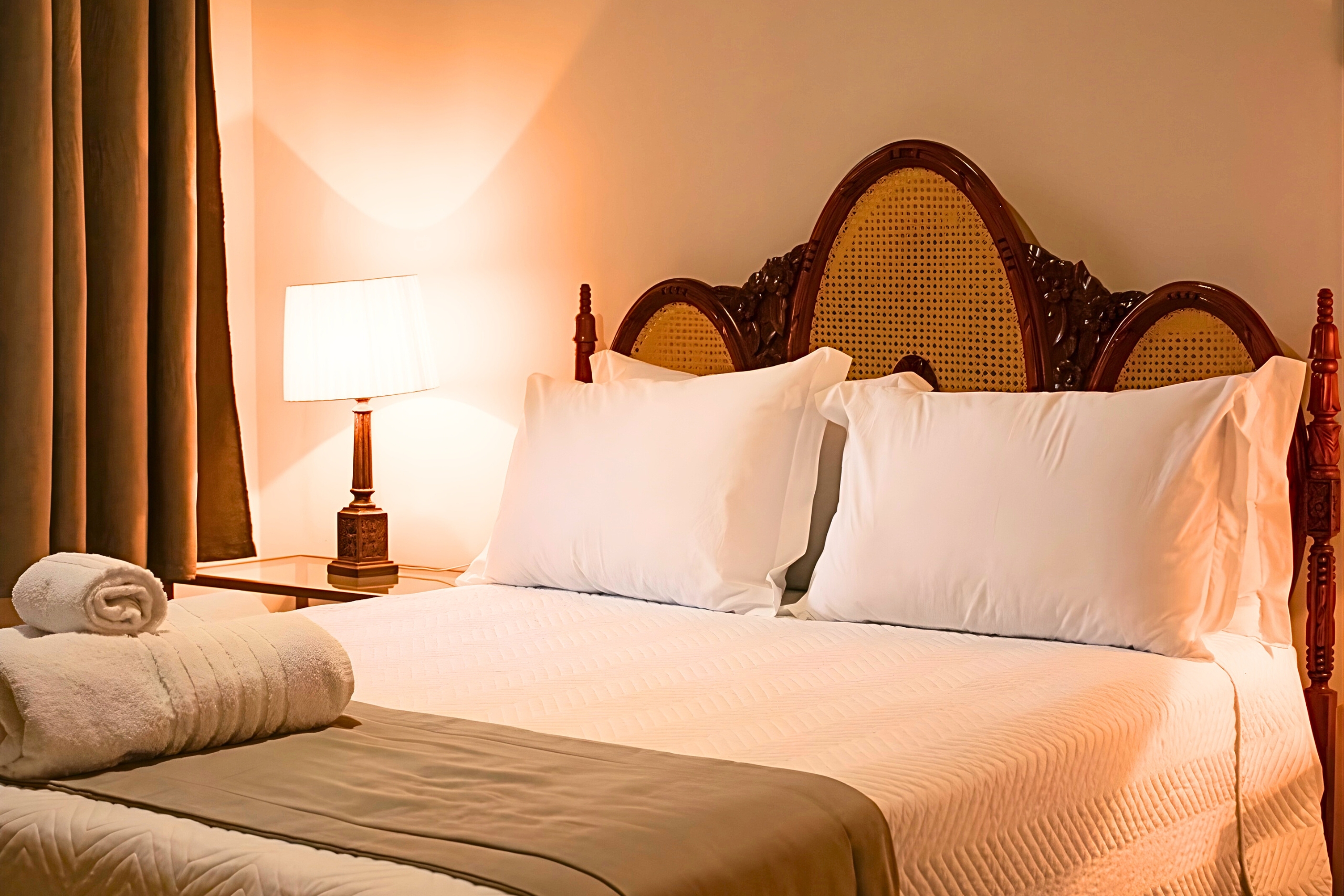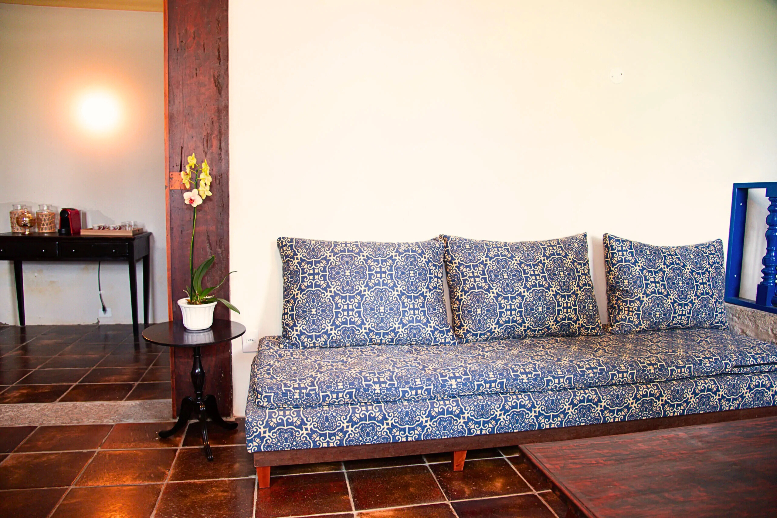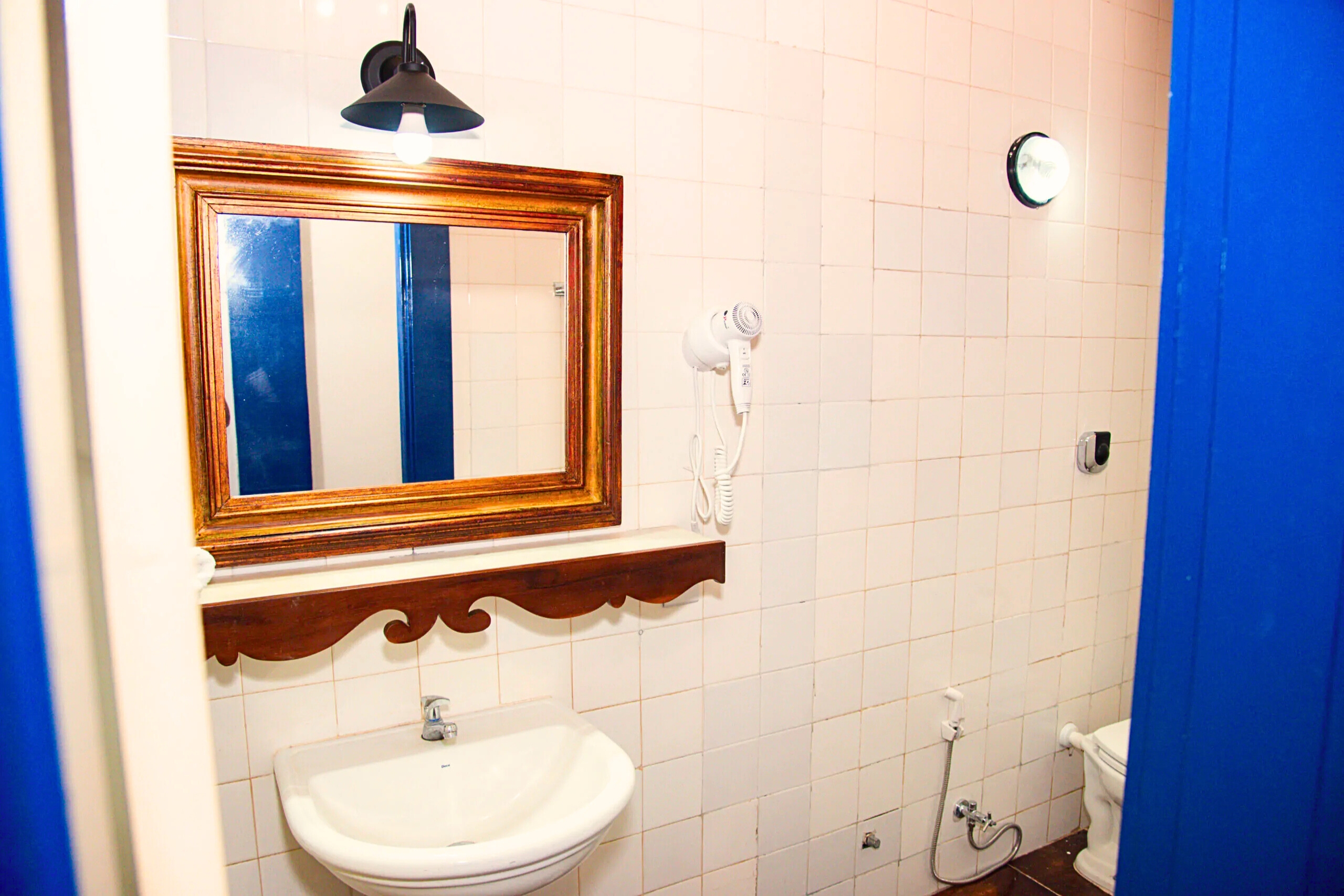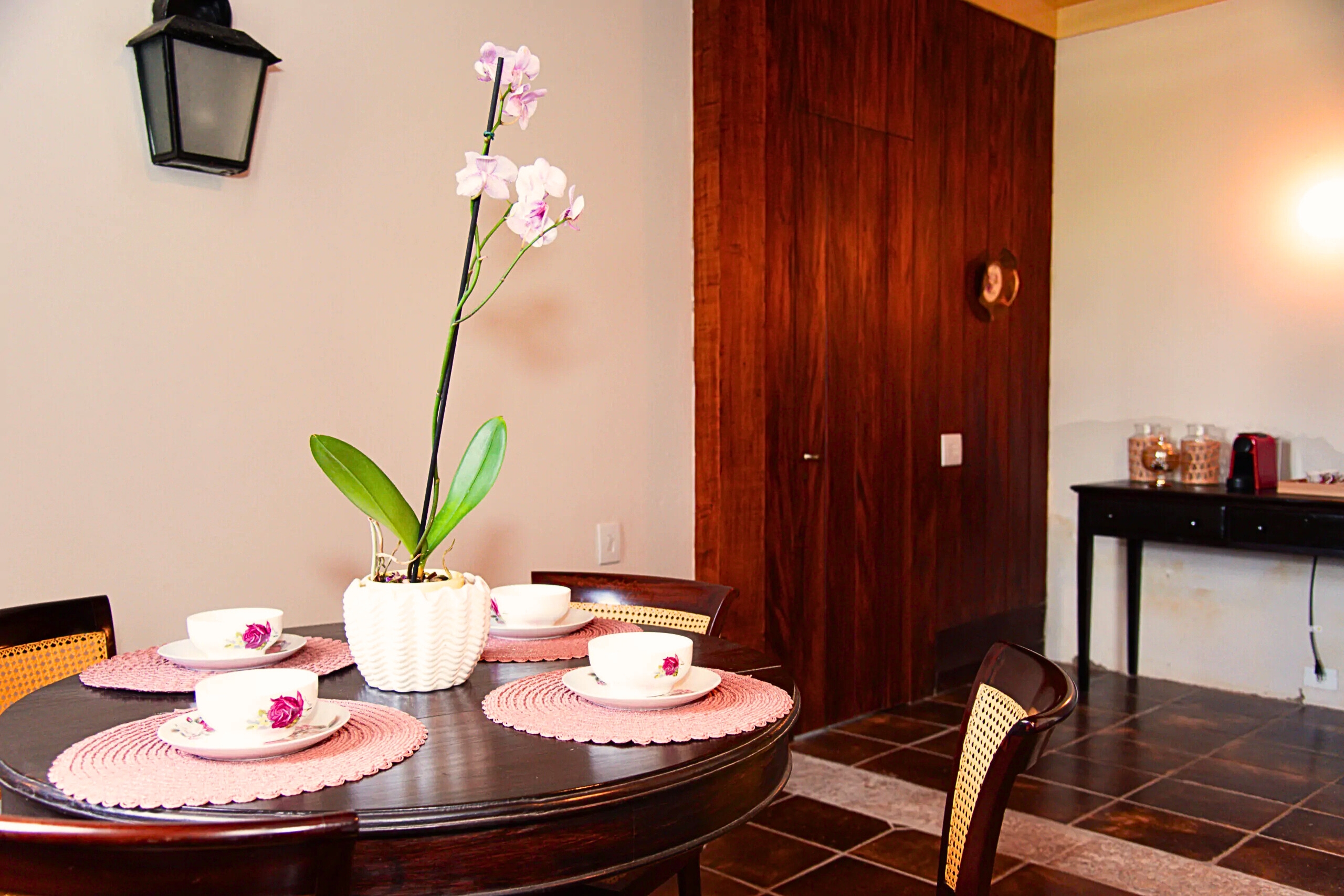 A Suíte Colonial I acomoda confortavelmente até 3 pessoas e oferece uma localização privilegiada, ao lado da recepção. Conta com uma cama de casal e outra de solteiro, além de uma agradável sala de estar, equipada com mesa, cadeiras e sofá, proporcionando mais conforto e praticidade durante a estada.