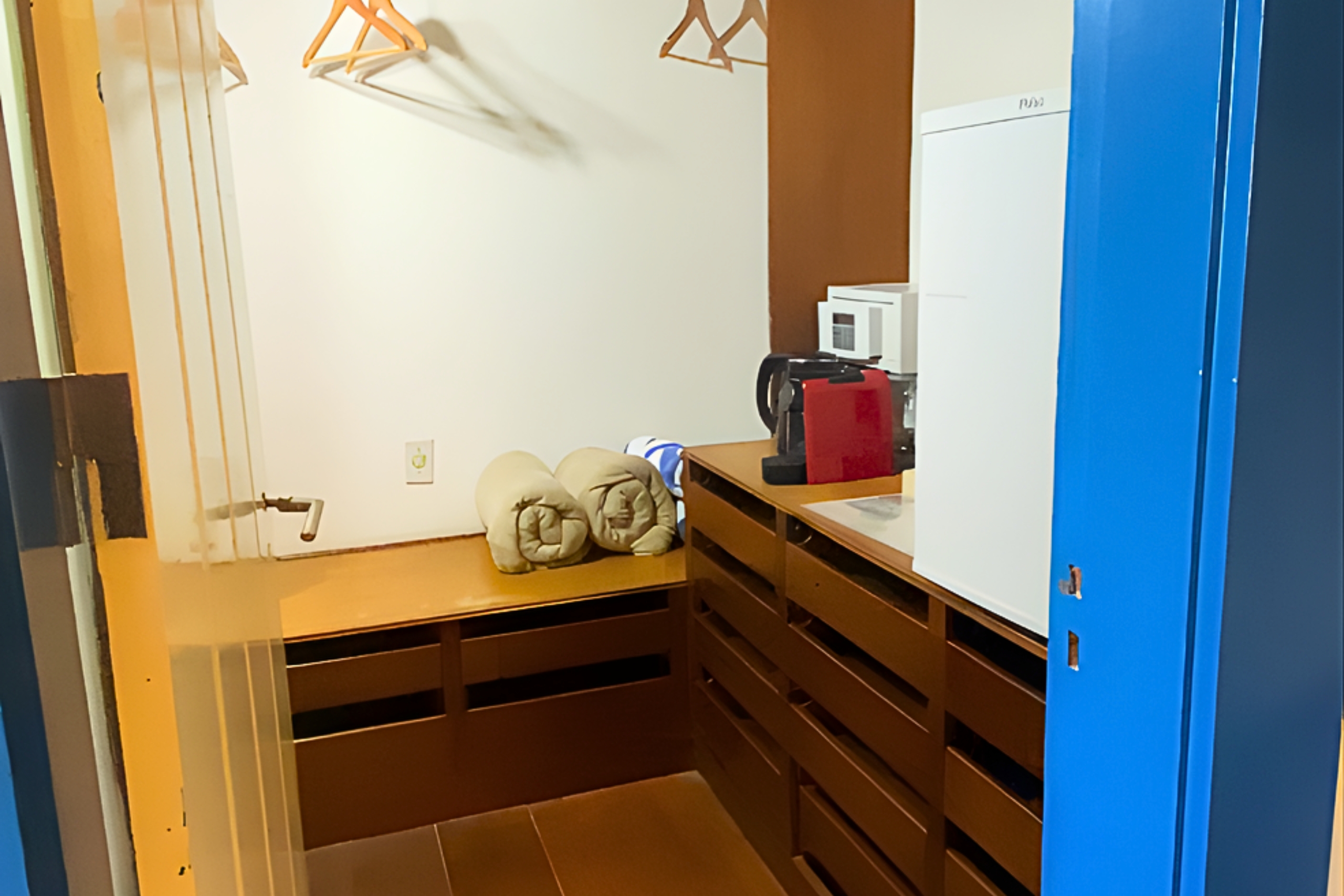 Dispõe ainda de cozinha, com micro-ondas e frigobar, ideal para pequenas refeições e maior comodidade.